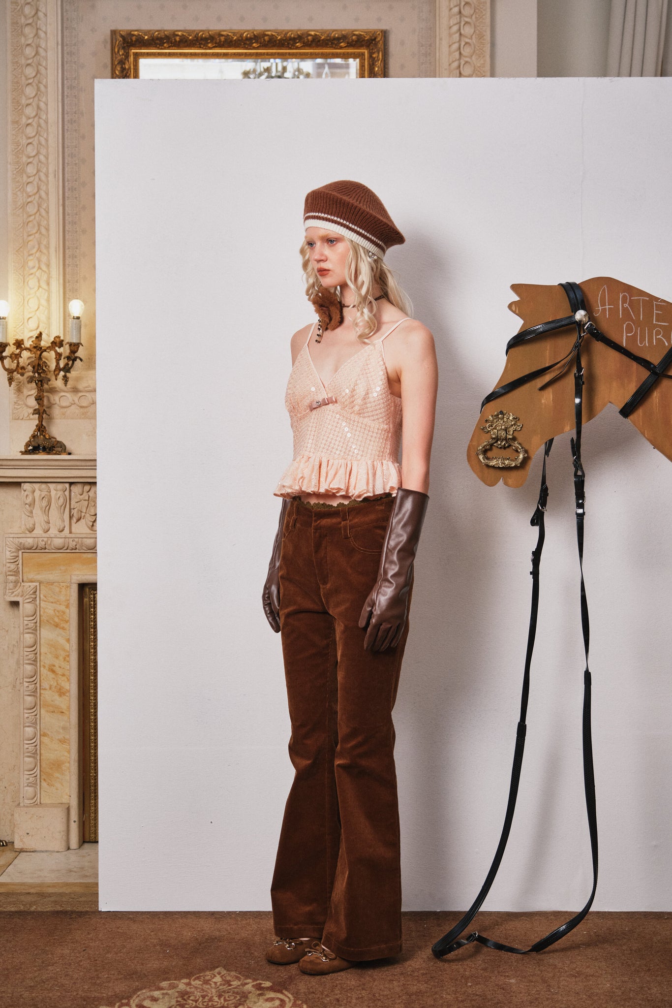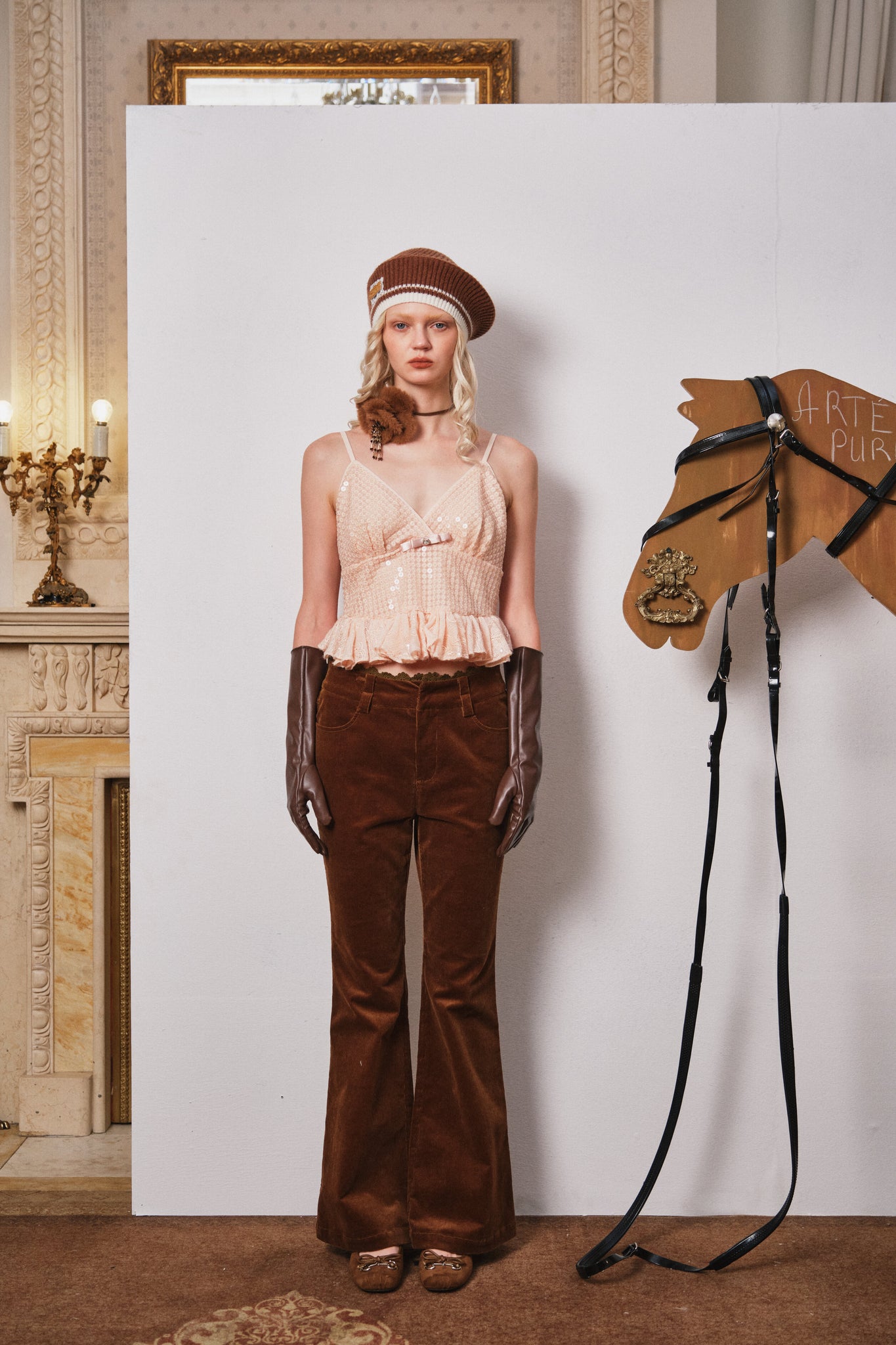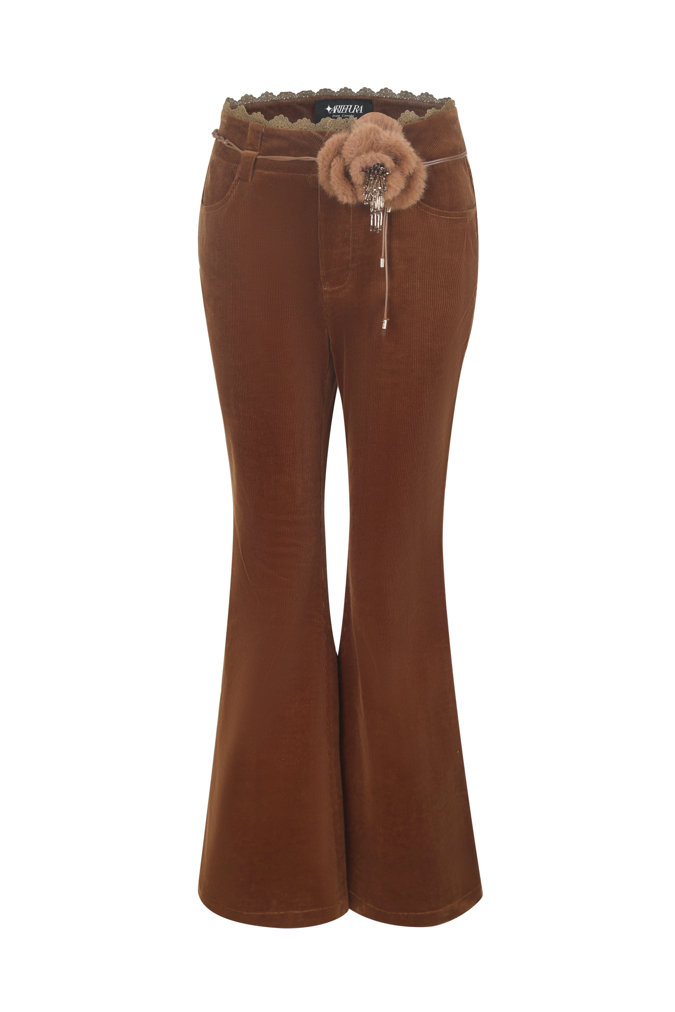 Brown Floral Corduroy Flared Pants